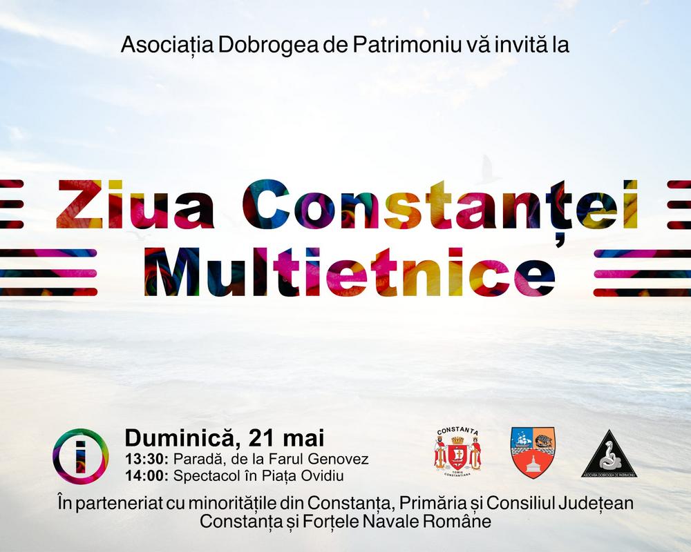„Ziua Constanței Multietnice” va începe cu o paradă pe faleza Cazinoului din Constanța și va continua cu un spectacol în Piața Ovidiu. Toți constănțenii care vor să sărbătorească de ziua orașului lor, fie că poartă sau nu costume tradiționale, sunt așteptați la eveniment duminică, 21 mai.   Atât reprezentanții etniilor, cât și constănțenii interesați să participe la manifestarea culturală, vor defila, de la ora 13:30, cu pornire din dreptul Farului Genovez, pe faleza Cazinoului din Constanța. Coloana se va îndrepta spre Piața Ovidiu, unde, de la ora 14:00, va avea loc spectacolul la care participă minoritățile. Muzica Militară a Forțelor Navale Române va însoți coloana până la scena din Piața Ovidiu și va cânta în debutul evenimentului.   La paradă, dar și pe scenă, vor participa: Ansamblul Folcloric Profesionist ”Brâulețul” din cadrul Centrului Cultural Județean ”Teodor T. Burada”, Ansamblul ”Elpis” al Comunității Elene Elpis Constanța, Ansamblul Can Renkler al Uniunii Democrate a Tătarilor Turco-Musulmani din România filiala Constanța,  Ansamblul ”Galuboe More” al Comunității Rușilor Lipoveni Constanța, Ansamblul ”Iholu” al Comunității Aromâne Constanța, Ansamblul ”Nairi” al Uniunii Armenilor din România filiala Constanța și Ansamblul ”Șirinler”, al Uniunii Democrate Turce din România filiala Constanța. De asemenea, voluntarii Asociației ”Historia Renascita” filiala Constanța, îmbrăcați în costume de daci și romani vor susține, în public, lecții de istorie vie.   Evenimentul cultural „Ziua Constanței Multietnice” va fi prezentat de actorul și regizorul Dan Cojocaru.   Manifestarea culturală este organizată de Asociația Dobrogea de Patrimoniu, în colaborare cu Primăria și Consiliul Județean Constanța, cu participarea minorităților din oraș și a Muzicii Militare a Forțelor Navale Române.   La eveniment și-au anunțat participarea: Asociația ”Cusături Dobrogene”, Comunitatea ”Domnițe cu altițe” și reprezentantele Asociației ”Ia de la malul mării”, ale căror membre sunt colecționare de costume tradiționale autentice românești.