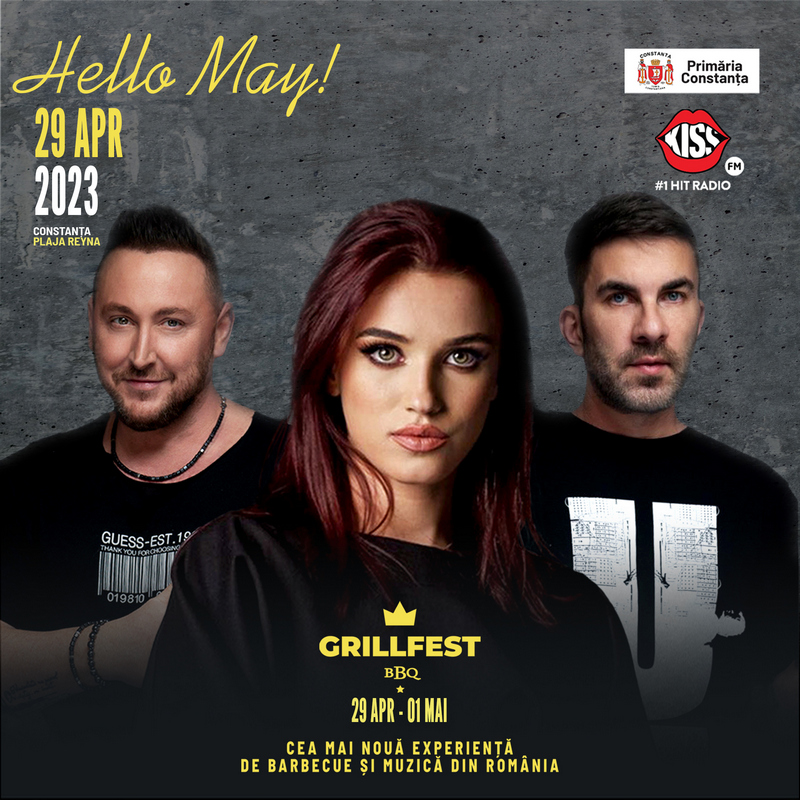 „Hello, May!” Cea mai nouă experiență de barbecue și muzică, GRILL FEST,  evenimentul care reunește cei mai cunoscuți chefi, cele mai relevante branduri din industria cărnii și cei mai îndrăgiți artiști din industria muzicală e din ce în ce mai aproape! Plaja Reyna din Constanța va deveni, în perioada 29 aprilie-01 mai, locul perfect pentru a vă satisface pofta de mâncare bună... Și dacă asta nu este suficient, pregătiți-vă pentru concerte de neuitat cu Smiley, Carla's Dreams, Spike, DJ Project, Manuel Riva, Albwho și Partydul Kiss. Grill Fest este un eveniment organizat de Primăria Constanța și Carnexpo, susținut de Kiss FM și prezentat de Marian Soci. Intrarea este liberă. Vă așteptăm pe plajă cu muzică LIVE, entertainment și multe feluri de mâncare delicioasă!