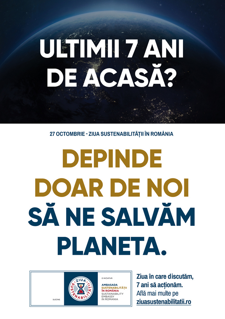 Astăzi este timpul să ne orientăm cu toții atenția spre lucrurile ce nu mai pot fi lăsate pe mâine. De Ziua Sustenabilității în România încetinim ritmul activităților noastre zilnice pentru a ne alătura discuției despre cum putem încetini ritmul încălzirii globale. Pe www.ziuasustenabilitatii.ro, Ceasul Schimbărilor Climatice ne indică, în timp real, cât mai avem până când e prea târziu pentru a preveni transformări severe și imprevizibile ale vieții pe Pământ, așa cum o cunoaștem astăzi. „Ziua Sustenabilității în România este despre schimbare. Avem nevoie să ne schimbăm modul de a trăi și de a folosi produse și servicii. Companiile responsabile și Uniunea Europeană accelerează tranziția către modelul economic care ne va ajuta să trăim într-un mediu sănătos, o societate echitabilă și prosperă. Pentru a susține aceste eforturi, este nevoie ca noi, consumatorii, să alegem produsele și serviciile, fiind atenți și la impactul pe care acestea le au asupra mediului și, implicit, asupra sănătății noastre. Dincolo de eforturile organizațiilor, atâta timp cât nu există cerere, nu va apărea nici oferta. Cumulate, alegerile noastre individuale mai sustenabile au puterea de a remodela lumea în care trăim și pe care o vom lăsa moștenire generațiilor viitoare. 27 octombrie este ziua în care discutăm. În tot restul anului, acționăm,” a declarat Dragoș Tuță, Președinte și Fondator Ambasada Sustenabilității în România. „Orientarea către energii regenerabile, eficiența energetică și reducerea emisiilor de carbon sunt teme de referință pentru Europa. Le mulțumim celor care sunt deja inițiatori ai schimbării și contribuie la un viitor sustenabil al României. Ne dorim implicarea comunităților locale pentru a implementa tehnologiile viitorului. Trebuie să găsim soluții și acțiuni noi prin care să consumăm mai responsabil resursele pe care natura le poate regenera. Copiii și tinerii de astăzi merită să trăiască într-un mediu sănătos”, a declarat Ionuț Rusu, viceprimarul municipiului Constanța. Site-ul www.ziuasustenabilitatii.ro reunește o serie de soluții pe care orice actor din societate le poate implementa pentru a-și reduce amprenta de carbon și încetini astfel cronometrul climatic: consum responsabil de resurse (de la apă până la mâncare), tranziția la economie circulară, investiții în energie verde, dezvoltarea de lanțuri valorice verzi în mediul privat, creșterea procentului de achiziții publice verzi, prioritizarea și susținerea investițiilor în sectorul de cercetare dedicat soluțiilor bazate pe natură, creșterea procentului de credite verzi pentru susținerea tranziției la afaceri cu emisii scăzute de carbon etc. De asemenea, tot pe site-ul campaniei, există o secțiune dedicată argumentelor științifice ce confirmă urgența climatică, dar și o secțiune ce explică schimările climatice pe înțelesul tuturor, dezvoltată în parteneriat cu rețeaua de cercetători de la InfoClima. Zilei Sustenabilității în România (ZSR) este o inițiativă a Ambasadei Sustenabilității în România (ASR), fiind al doilea an consecutiv în care organizația marchează această zi simbolică prin care încetinim ritmul activităților noastre zilnice și căutăm soluții și idei prin care să creștem ritmul de construire al unei societăți sustenabile.