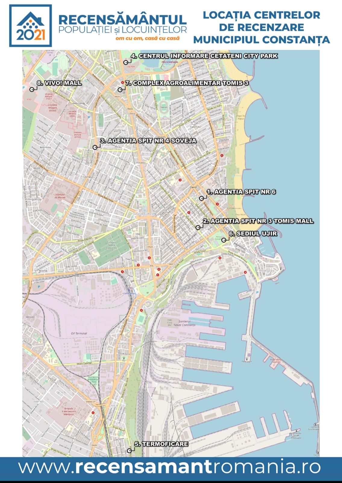 Sediul UJIR (Unitatea Județeană de Implementare a Recensământului) Bd Tomis, nr.51, Program: luni, marți, miercuri, joi, vineri: între orele 08:30-16:00.