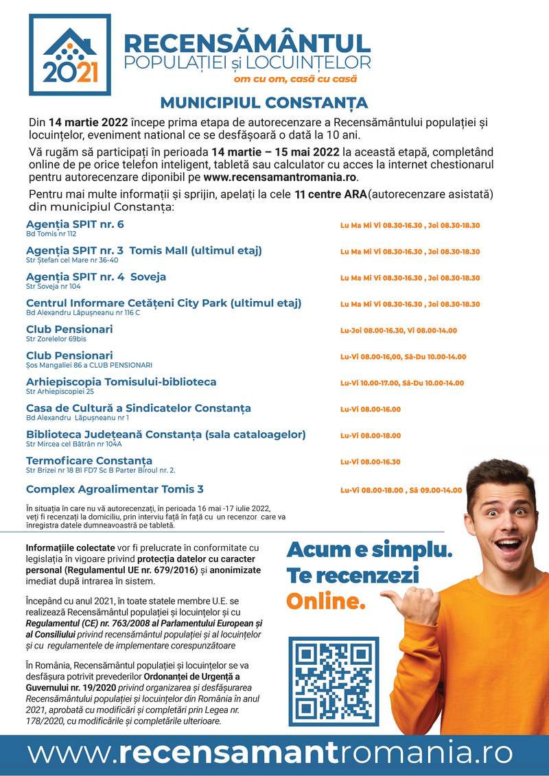 Pentru mai multe informații și sprijin, vă rugăm să apelați la cele 10 centre ARA ( autorecenzare asistată) din municipiul Constanța.